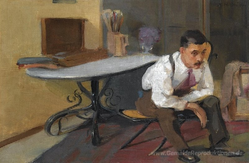 Wir bieten Ihnen eine handgefertigte Reproduktion auf Leinwand des berühmten Kunstwerks 'Der Künstler in seinem Atelier' von Nikolaos Lytras, aus dem Reproduktionsmuseum.