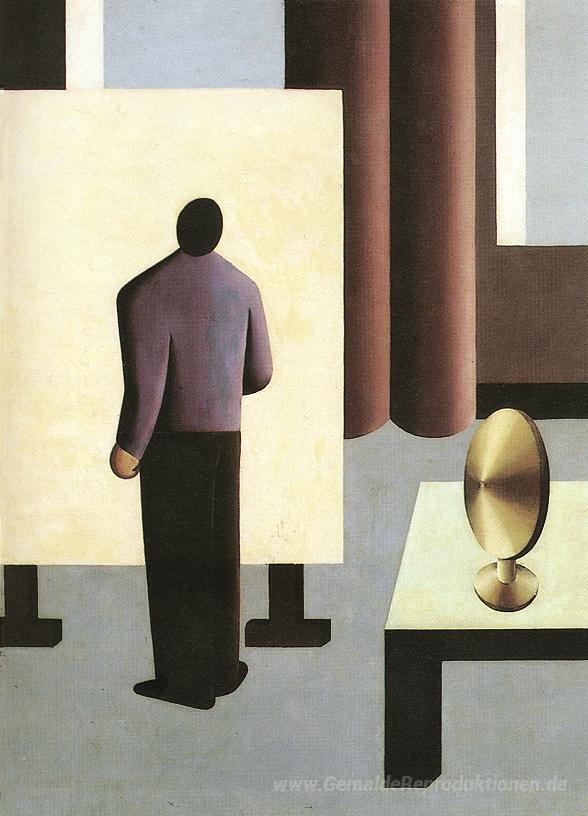 Wir bieten Ihnen eine handgefertigte Reproduktion auf Leinwand des berühmten Kunstwerks 'Der Maler' von Sandor Bortnyik, aus dem Reproduktionsmuseum.