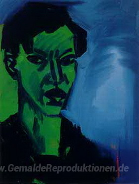 Wir bieten Ihnen eine handgefertigte Reproduktion auf Leinwand des berühmten Kunstwerks 'Grünes Selbstportrait' von Rainer Fetting, aus dem Reproduktionsmuseum.