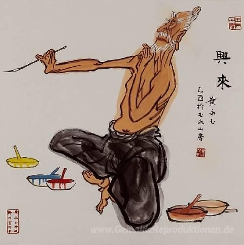 Wir bieten Ihnen eine handgefertigte Reproduktion auf Leinwand des berühmten Kunstwerks 'In Stimmung' von Huang Yongyu, aus dem Reproduktionsmuseum.