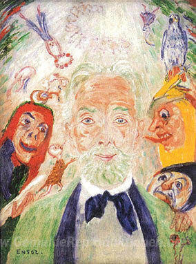 Wir bieten Ihnen eine handgefertigte Reproduktion auf Leinwand des berühmten Kunstwerks 'Mir und meinen Freundeskreis' von James Ensor, aus dem Reproduktionsmuseum.