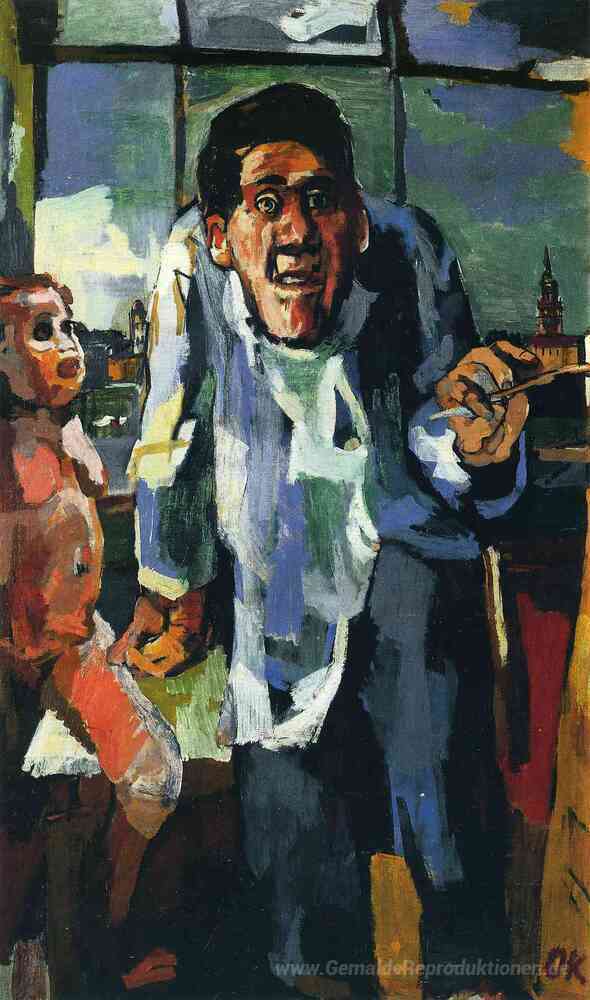Wir bieten Ihnen eine handgefertigte Reproduktion auf Leinwand des berühmten Kunstwerks 'OK auf Staffelei' von Oskar Kokoschka, aus dem Reproduktionsmuseum.