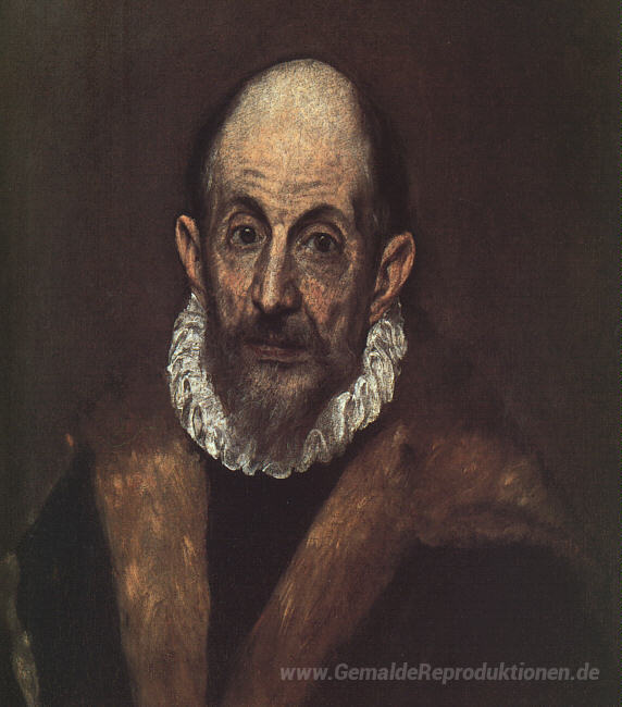 Willkommen in unserer exklusiven Sammlung von Ölgemälden, in der Meisterwerke wie das faszinierende Portrait eines alten Mannes, ein mutmaßliches Selbstporträt von El Greco, auf Sie warten. El Greco, ein bedeutender Künstler der spanischen Renaissance, kombiniert in seinen Arbeiten Elemente des expressionistischen Stils mit einer einzigartigen Farbpalette, die Emotionen und tiefgründige Gedanken vermittelt. Diese kunstvollen Details erwecken bei Betrachtern das Gefühl, in die Seele des dargestellten Protagonisten einzutauchen.