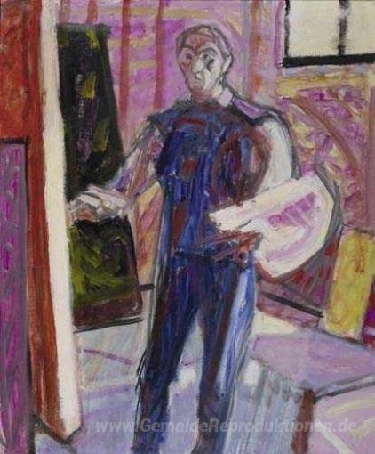 Wir bieten Ihnen eine handgefertigte Reproduktion auf Leinwand des berühmten Kunstwerks 'Selbstbildnis, ganzfigur' von Max Gubler, aus dem Reproduktionsmuseum.