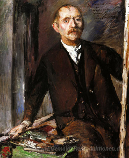 Wir bieten Ihnen eine handgefertigte Reproduktion auf Leinwand des berühmten Kunstwerks 'Selbstbildnis vor der Staffelei' von Lovis Corinth, aus dem Reproduktionsmuseum.