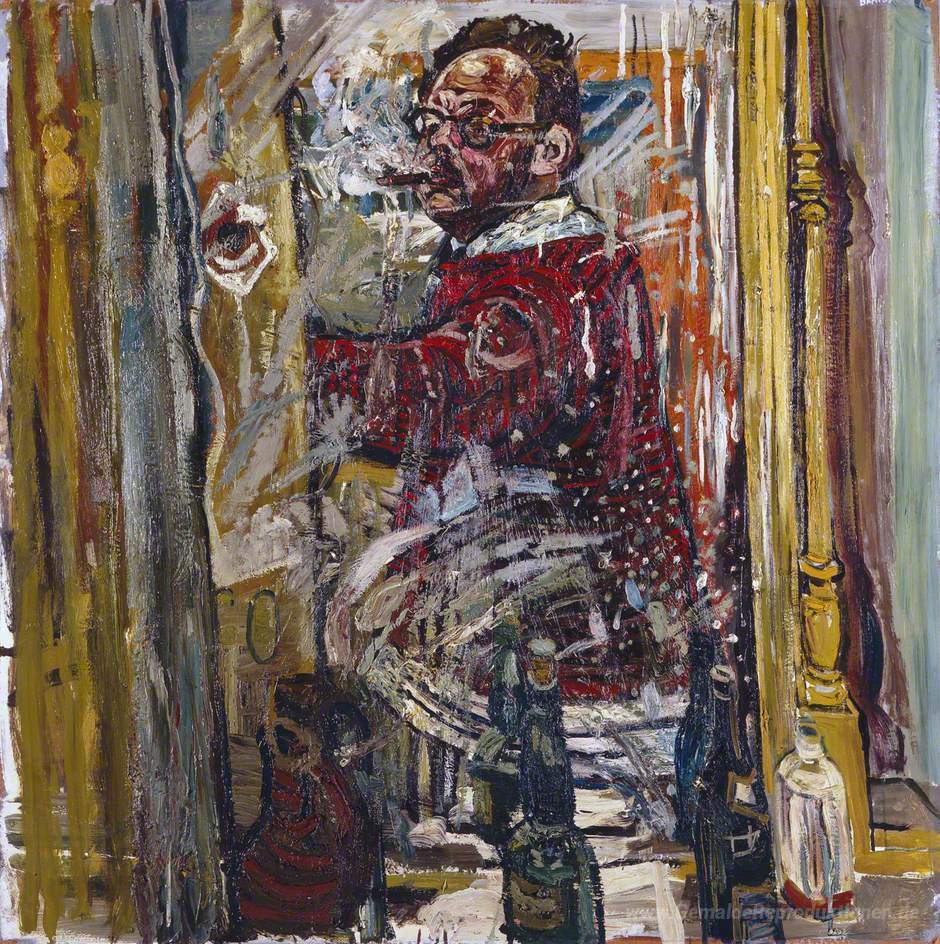 Wir bieten Ihnen eine handgefertigte Reproduktion auf Leinwand des berühmten Kunstwerks 'Selbstporträt in einem Spiegel' von John Bratby, aus dem Reproduktionsmuseum.