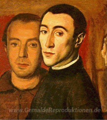 Wir bieten Ihnen eine handgefertigte Reproduktion auf Leinwand des berühmten Kunstwerks 'Selbstporträt mit Nikos Nikolaou' von Yiannis Moralis, aus dem Reproduktionsmuseum.