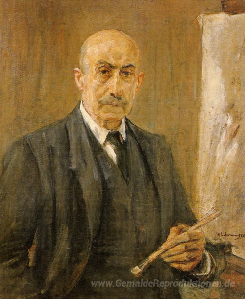 Wir bieten Ihnen eine handgefertigte Reproduktion auf Leinwand des berühmten Kunstwerks 'Selbstporträt mit Palette' von Max Liebermann, aus dem Reproduktionsmuseum.