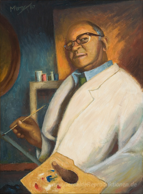 Wir bieten Ihnen eine handgefertigte Reproduktion auf Leinwand des berühmten Kunstwerks 'Selbstporträt' von George Pemba, aus dem Reproduktionsmuseum.