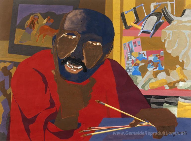 Willkommen in der Welt der Ölgemälde, wo jede Leinwand eine Geschichte erzählt und jeder Pinselstrich das Wesen des Künstlers einfängt. Eines dieser besonderen Werke ist das Selbstporträt von Jacob Lawrence, einem Meister der Darstellung von Identität und kulturellem Ausdruck. Durch seinen einzigartigen Stil verbindet er lebendige Farbtöne mit dynamischen Formen, wodurch jedes Kunstwerk eine unmittelbare emotionale Verbindung zum Betrachter herstellt.