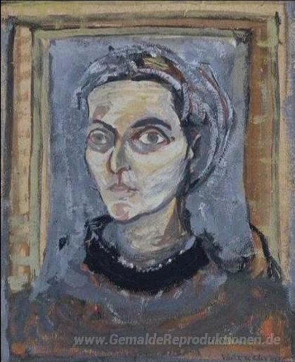 Wir bieten Ihnen eine handgefertigte Reproduktion auf Leinwand des berühmten Kunstwerks 'Selbstporträt' von Maria Helena Vieira da Silva, aus dem Reproduktionsmuseum.