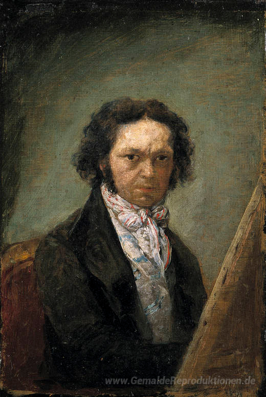 Wir bieten Ihnen eine handgefertigte Reproduktion auf Leinwand des berühmten Kunstwerks 'Selbstportrait' von Francisco Goya, aus dem Reproduktionsmuseum.