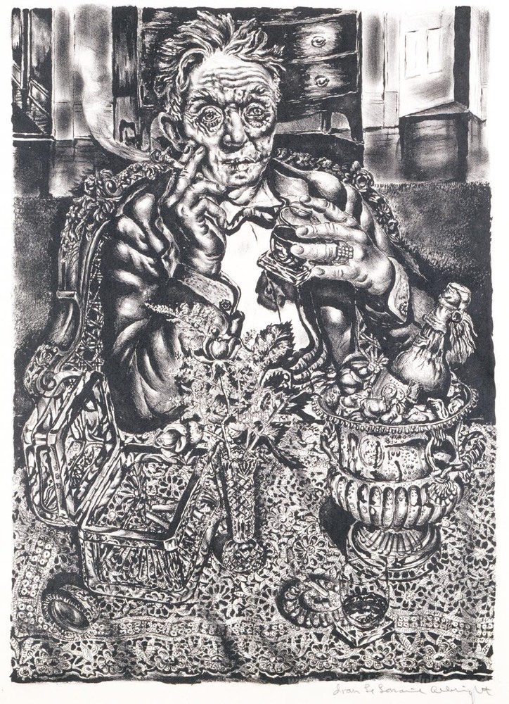 Wir bieten Ihnen eine handgefertigte Reproduktion auf Leinwand des berühmten Kunstwerks 'Self-Portrait - 55 East Division Street' von Ivan Albright, aus dem Reproduktionsmuseum.