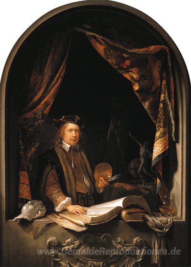 Die detailreichen Darstellungen und die bemerkenswerte Lichtführung in Dou's Arbeiten schaffen eine atmosphärische Tiefe, die den Betrachter in ihren Bann zieht. Mit durchdachten Farbkombinationen und präziser Pinseltechnik verleihen diese Meisterwerke jedem Raum eine einzigartige Ausstrahlung. Ein Ölgemälde wie das Self-Portrait ist nicht nur ein Kunstwerk, sondern ein geschmackvolles Statement für Ihr Zuhause, das Inspiration und Eleganz vermittelt.