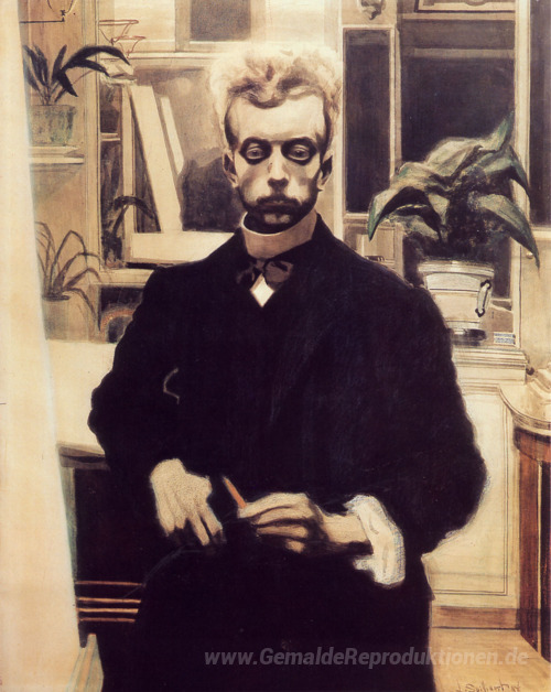 Wir bieten Ihnen eine handgefertigte Reproduktion auf Leinwand des berühmten Kunstwerks 'Self-Portrait' von Leon Spilliaert, aus dem Reproduktionsmuseum.