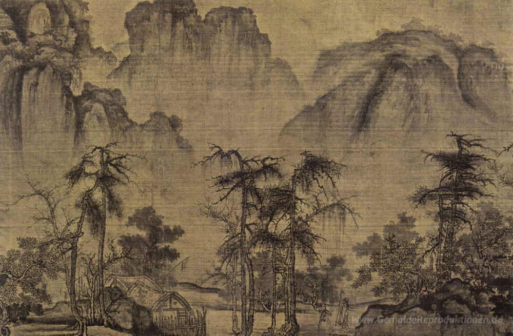 Wir bieten Ihnen eine handgefertigte Reproduktion auf Leinwand des berühmten Kunstwerks 'Clearing Herbst-Himmel über Berg und Tal (Detail)' von Guo Xi, aus dem Reproduktionsmuseum.