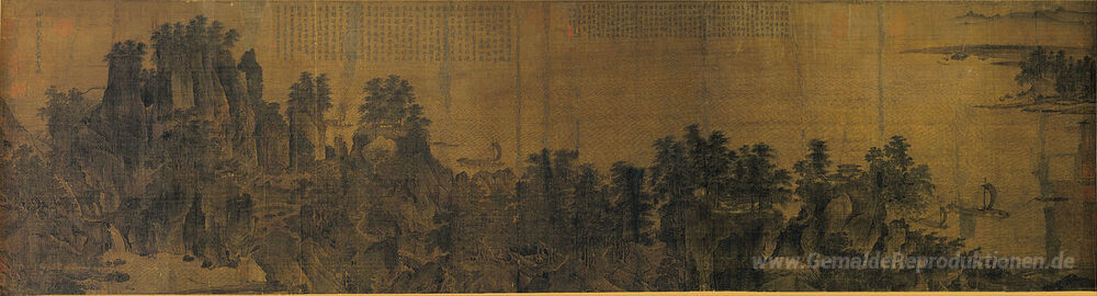 Wir bieten Ihnen eine handgefertigte Reproduktion auf Leinwand des berühmten Kunstwerks 'Intimate Landschaft der Fluss und die Berge (Detail)' von Li Tang, aus dem Reproduktionsmuseum.