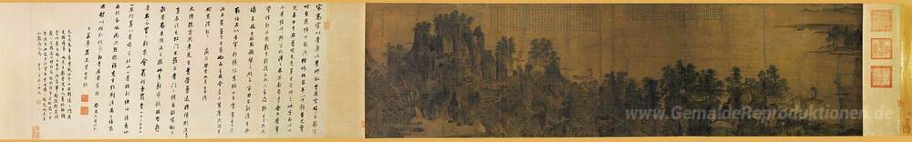 Wir bieten Ihnen eine handgefertigte Reproduktion auf Leinwand des berühmten Kunstwerks 'Intimate Landschaft der Fluss und die Berge' von Li Tang, aus dem Reproduktionsmuseum.