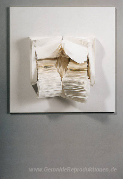 Wir bieten Ihnen eine handgefertigte Reproduktion auf Leinwand des berühmten Kunstwerks '13 IV 82 (Buchobjekt)' von Oskar Holweck, aus dem Reproduktionsmuseum.
