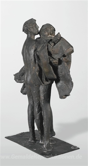 Wir bieten Ihnen eine handgefertigte Reproduktion auf Leinwand des berühmten Kunstwerks 'Amanti' von Giacomo Manzu, aus dem Reproduktionsmuseum.