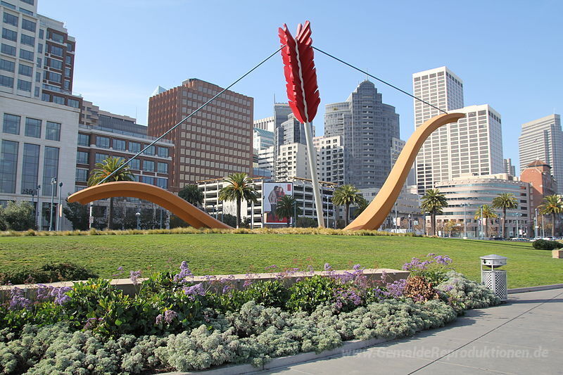 Wir bieten Ihnen eine handgefertigte Reproduktion auf Leinwand des berühmten Kunstwerks 'Amors Span (Zusammenarbeit mit van Bruggen)' von Claes Oldenburg, aus dem Reproduktionsmuseum.