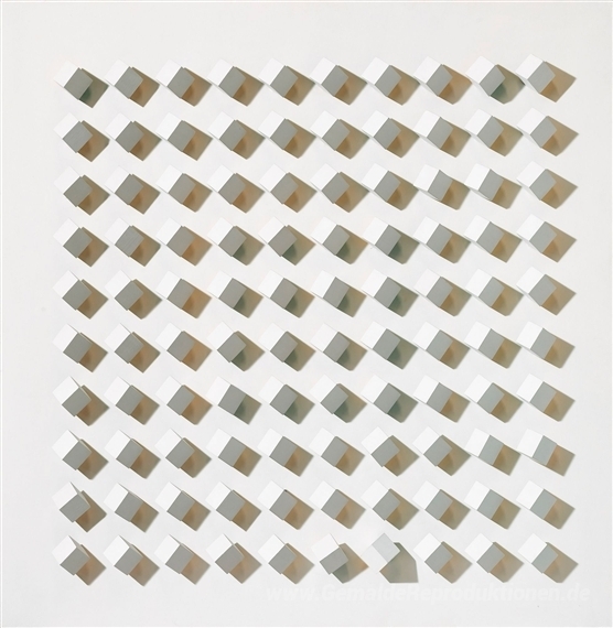 Wir bieten Ihnen eine handgefertigte Reproduktion auf Leinwand des berühmten Kunstwerks 'Atmosphère Chromoplastique N ° 109' von Luis Tomasello, aus dem Reproduktionsmuseum.