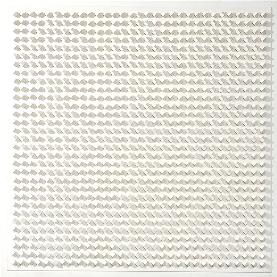 Wir bieten Ihnen eine handgefertigte Reproduktion auf Leinwand des berühmten Kunstwerks 'Atmosphère Chromoplastique N ° 187' von Luis Tomasello, aus dem Reproduktionsmuseum.