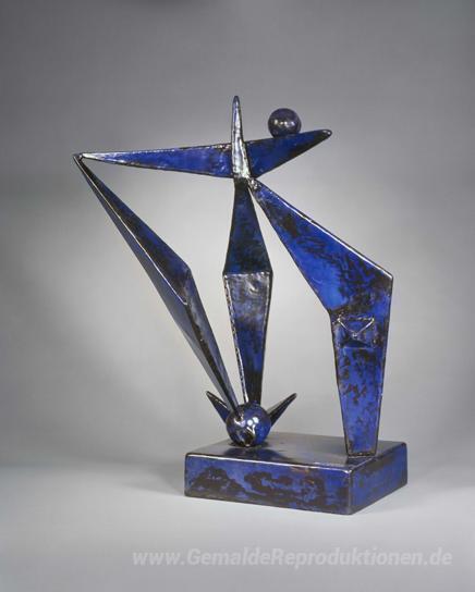 Wir bieten Ihnen eine handgefertigte Reproduktion auf Leinwand des berühmten Kunstwerks 'Aufbau blau' von David Smith, aus dem Reproduktionsmuseum.
