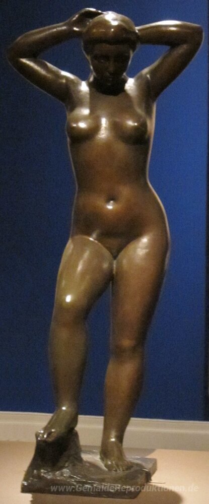 Wir bieten Ihnen eine handgefertigte Reproduktion auf Leinwand des berühmten Kunstwerks 'Badende Putting ihr Haar' von Aristide Maillol, aus dem Reproduktionsmuseum.