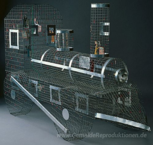 Wir bieten Ihnen eine handgefertigte Reproduktion auf Leinwand des berühmten Kunstwerks 'Bahn' von Howard Finster, aus dem Reproduktionsmuseum.