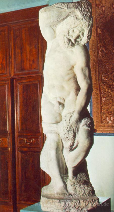 Wir bieten Ihnen eine handgefertigte Reproduktion auf Leinwand des berühmten Kunstwerks 'Bearded Slave' von Michelangelo, aus dem Reproduktionsmuseum.