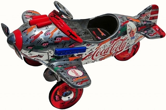 Wir bieten Ihnen eine handgefertigte Reproduktion auf Leinwand des berühmten Kunstwerks 'Coca Cola Flugzeug' von Howard Finster, aus dem Reproduktionsmuseum.