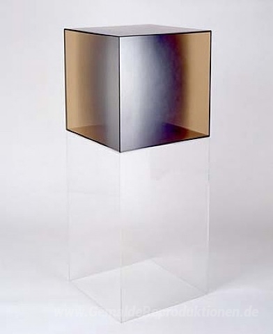 Wir bieten Ihnen eine handgefertigte Reproduktion auf Leinwand des berühmten Kunstwerks 'Cube # 31 (gelb)' von Larry Bell, aus dem Reproduktionsmuseum.