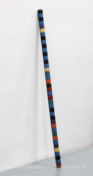 Wir bieten Ihnen eine handgefertigte Reproduktion auf Leinwand des berühmten Kunstwerks 'Cubic Bar aus Holz' von Andre Cadere, aus dem Reproduktionsmuseum.