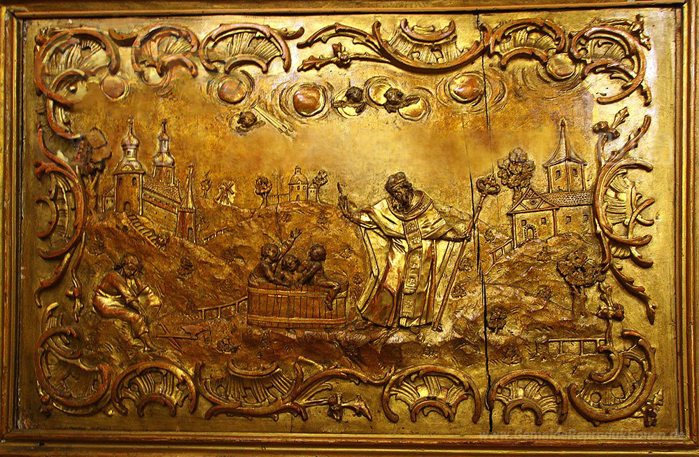 Wir bieten Ihnen eine handgefertigte Reproduktion auf Leinwand des berühmten Kunstwerks 'Das Wunder von St. Nikolaus' von Johann Georg Pinzel, aus dem Reproduktionsmuseum.