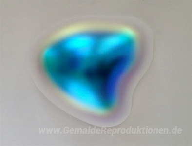 Wir bieten Ihnen eine handgefertigte Reproduktion auf Leinwand des berühmten Kunstwerks 'Flüssige Triangle Glo-Pod (Blau Grün)' von Gisela Colon, aus dem Reproduktionsmuseum.