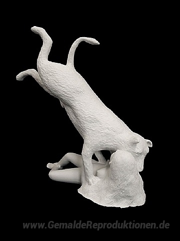 Wir bieten Ihnen eine handgefertigte Reproduktion auf Leinwand des berühmten Kunstwerks 'Frau mit Hund' von Kiki Smith, aus dem Reproduktionsmuseum.