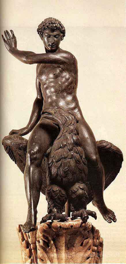 Wir bieten Ihnen eine handgefertigte Reproduktion auf Leinwand des berühmten Kunstwerks 'Ganymede' von Benvenuto Cellini, aus dem Reproduktionsmuseum.