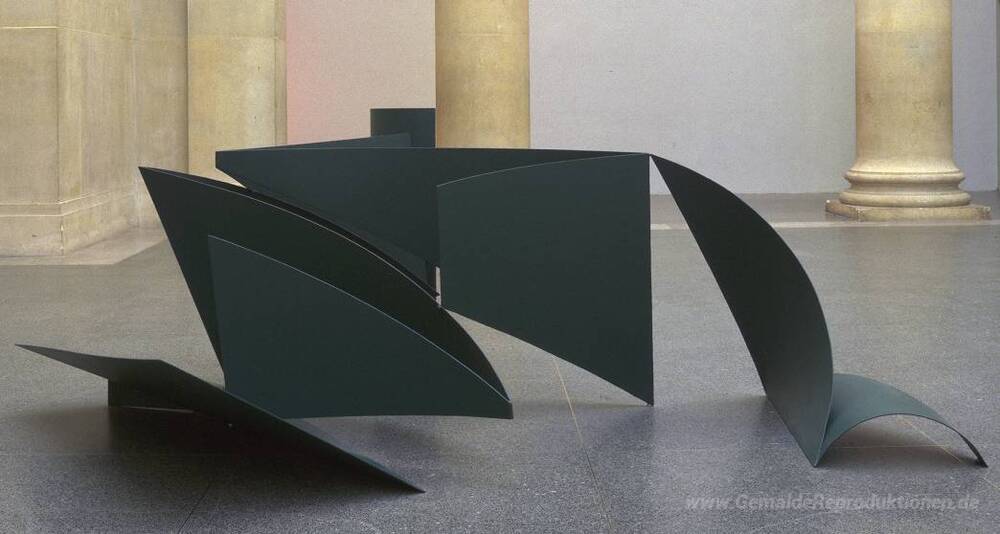 Wir bieten Ihnen eine handgefertigte Reproduktion auf Leinwand des berühmten Kunstwerks 'Grün Streamer' von Phillip King, aus dem Reproduktionsmuseum.