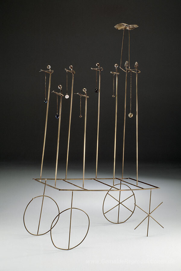 Wir bieten Ihnen eine handgefertigte Reproduktion auf Leinwand des berühmten Kunstwerks 'Il Carro dei rabdomanti' von Fausto Melotti, aus dem Reproduktionsmuseum.