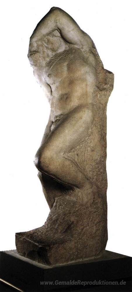 Wir bieten Ihnen eine handgefertigte Reproduktion auf Leinwand des berühmten Kunstwerks 'Junge Slave' von Michelangelo, aus dem Reproduktionsmuseum.