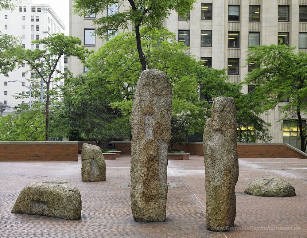 Wir bieten Ihnen eine handgefertigte Reproduktion auf Leinwand des berühmten Kunstwerks 'Landscape of Time' von Isamu Noguchi, aus dem Reproduktionsmuseum.