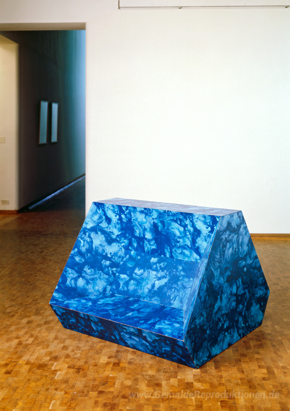 Wir bieten Ihnen eine handgefertigte Reproduktion auf Leinwand des berühmten Kunstwerks 'Logus (blau Logus)' von Richard Artschwager, aus dem Reproduktionsmuseum.