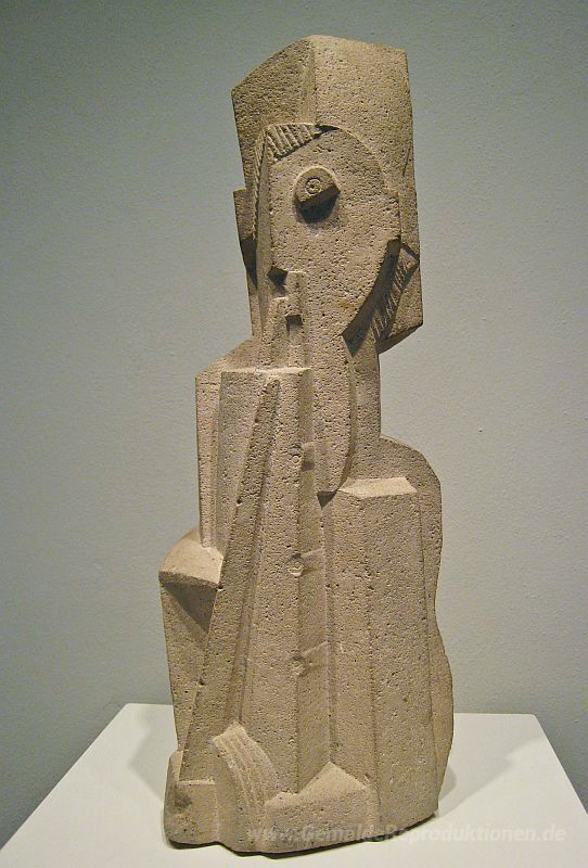 Wir bieten Ihnen eine handgefertigte Reproduktion auf Leinwand des berühmten Kunstwerks 'Mann mit Klarinette' von Henri Laurens, aus dem Reproduktionsmuseum.