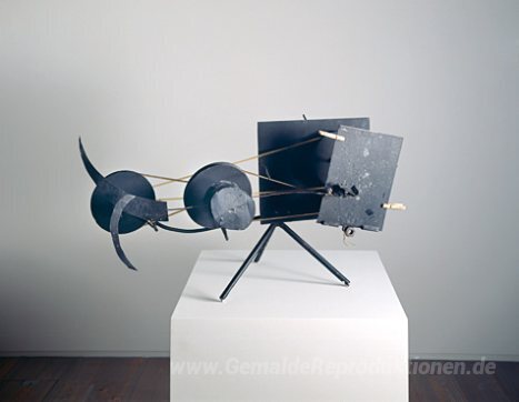 Wir bieten Ihnen eine handgefertigte Reproduktion auf Leinwand des berühmten Kunstwerks 'Meta-Matic No. 6' von Jean Tinguely, aus dem Reproduktionsmuseum.