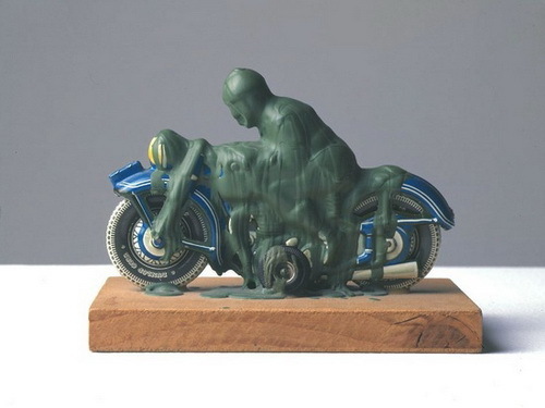 Wir bieten Ihnen eine handgefertigte Reproduktion auf Leinwand des berühmten Kunstwerks 'Motorradfahrer' von Dieter Roth, aus dem Reproduktionsmuseum.