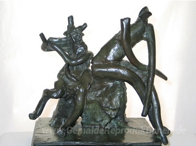 Wir bieten Ihnen eine handgefertigte Reproduktion auf Leinwand des berühmten Kunstwerks 'Nymphe und Satyr' von Reuben Nakian, aus dem Reproduktionsmuseum.