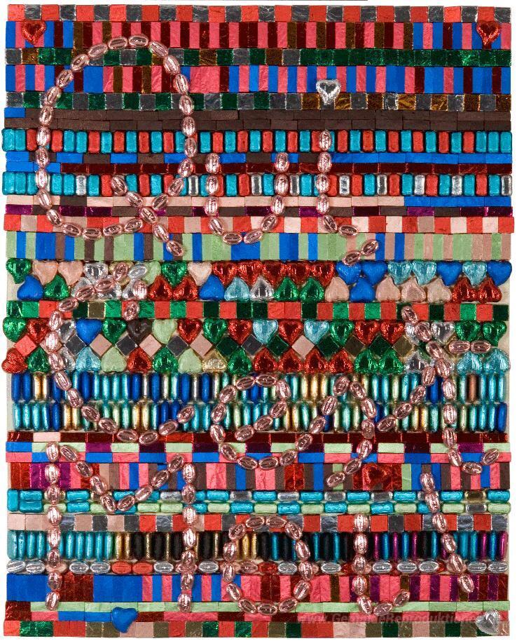 Wir bieten Ihnen eine handgefertigte Reproduktion auf Leinwand des berühmten Kunstwerks 'Qui c'est moi. Schokoladen-Mosaik' von Aldo Mondino, aus dem Reproduktionsmuseum.