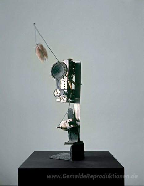 Wir bieten Ihnen eine handgefertigte Reproduktion auf Leinwand des berühmten Kunstwerks 'Radio-Skulptur' von Jean Tinguely, aus dem Reproduktionsmuseum.
