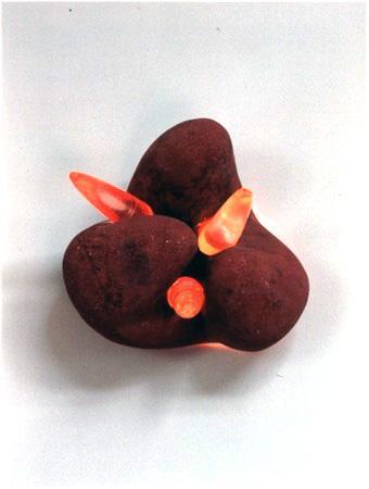 Wir bieten Ihnen eine handgefertigte Reproduktion auf Leinwand des berühmten Kunstwerks 'Red Lunar Faust' von Isamu Noguchi, aus dem Reproduktionsmuseum.
